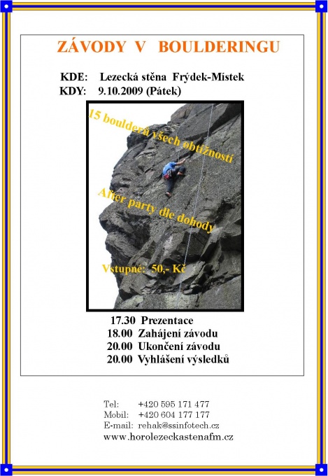 Pozvánka na 1. ročník série závodů v boulderingu na umělé stěně ve F-M.