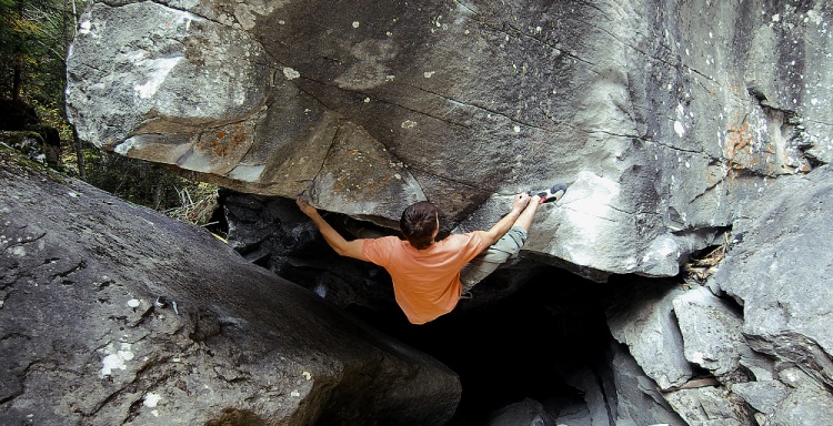 Averstalský boulder RIVERBED je pravděpodobně vůbec nejopakovanějším osmbéčkem posledních měsíců. Za o něco více než 2 měsíce (od 6.8.2008) vylezlo dlouhou střechu s výlezem na břehu řeky Avers v Magic Woodu hned 5 bouldristů.