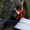 Vykašlu se na skok (tím to je dneska opravdu už asi 8B ze stoje, jak to vylezl Nalle), prolomím místo toho malou hnidu nalevo a zkouším šáhnout až do druhého chytu na hraně. A ono to jde. Vršek už nějak uplácám. Za pět minut si pod to sednu, a i přes únavu se nějak doplácám nahoru! Lézt to tedy stále jde, pro lištaře je to asi pořád 8B+! (třeba pro Rosťu bych řek i lehčí) a navíc se tam víc vyklepat. Špatné ovšem je, že ulomení toho, co tam zbylo, je jen otázkou času. Co pak, toť otázka. Možná to však půjde i potom... Peťan (kameraman) mně ještě zničí v Daggerovi a za hustého sněžení fičíme na vánoční cukroví.