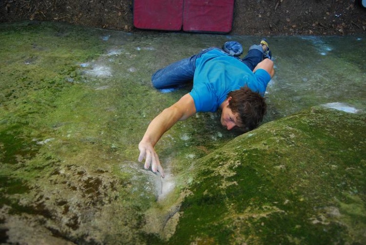 Ráno celkem svěží vstávání, kávička na pumpě a hurá na to. Dáváme procházku od parkáče, lezení ve spodním sektoru a pak tak postupně docházíme pod Mortal kombat – já si tu posedím pod ? a Raidenem. Všechno je takové dost ovlhlé a tak se přesouváme do okolí Pekla, Ádr fitnesu, kterej tam Jirka pošle dneska z první bomby. Setkání se Simčou a Tomem a o chvíli později s další pražskou posádkou – Balboáčem, Příbou, Katkou a Kubou. Každý si tu tak popolézá.