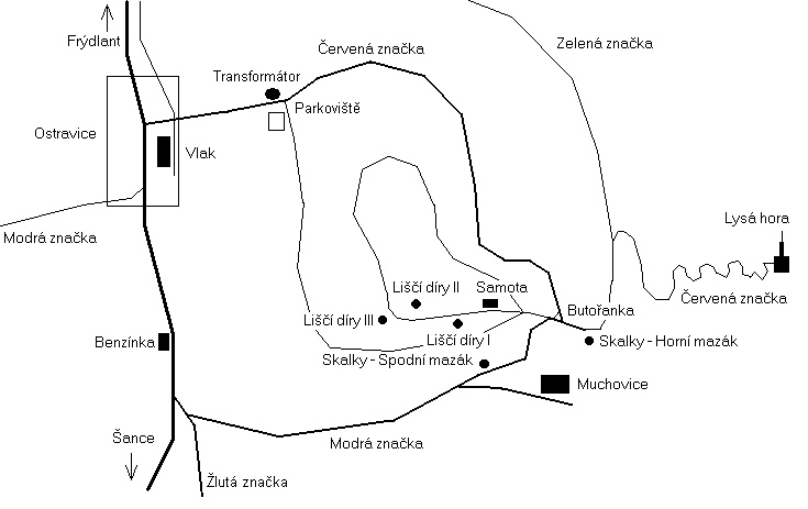 Jednotlivé skály jsou od sebe vzdáleny cca 200 - 300 m.