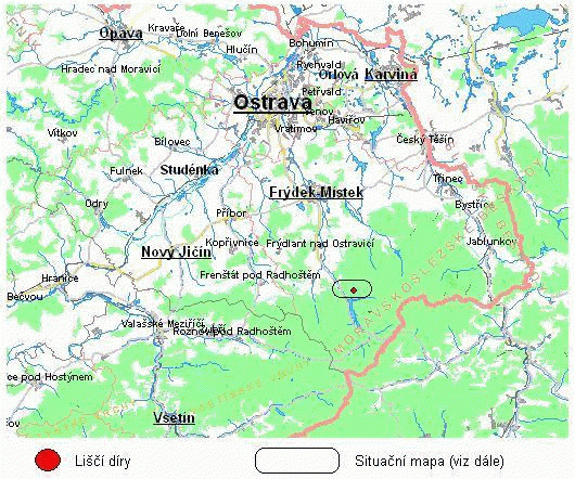 Z rozcestí Butořanka se dáme po výstupu červenou značkou lesní asfaltovou cestou doprava. Po výstupu modrou značkou, která přichází z opačné strany musíme tedy odbočit doleva. Poté již pokračujeme pořád rovně přes další rozcestí a po asi 500 m do mírného kopce narazíme na samotu, která je napravo. Pokračujeme po cestě pořád rovně a po dalších 300 m dorazíme k Liščím dírám I. Ty jsou pro změnu nalevo na kraji lesa. Pokračujeme-li dále po cestě, dojdeme k ostré pravotočivé zatáčce a odtud už vede doprava pěšina k Liščím dírám II a doleva k Liščím dírám III.