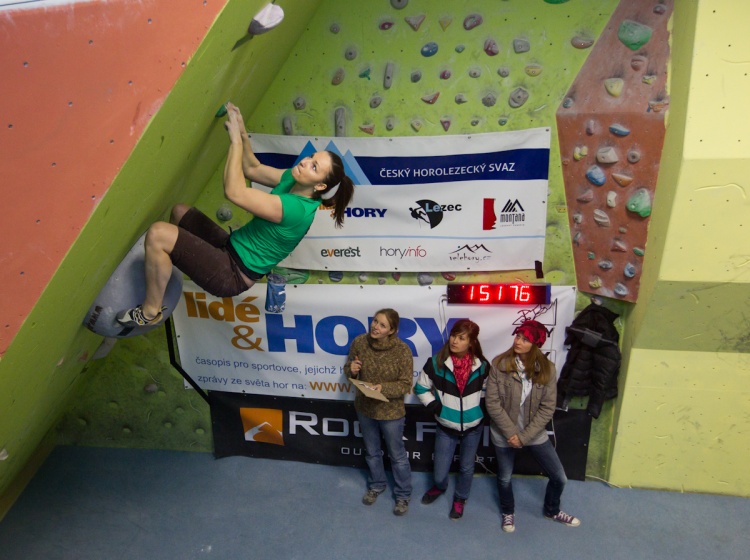 Závodnice startovaly podle výsledků z kvalifikace od osmé kopretiny až k první, závod tak postupně gradoval a nabýval na síle. Jako poslední nastoupila vítězka kvalifikace Petra Růžičková, která potvrdila svou formu a suverénně vyhrála se čtyřmi topy. Druhá skončila místní borkyně a zasloužilá matka Silva (dejte ji už někdo najíst) Nagyová a pro třetí místo si dolezla Silva Rajfová.