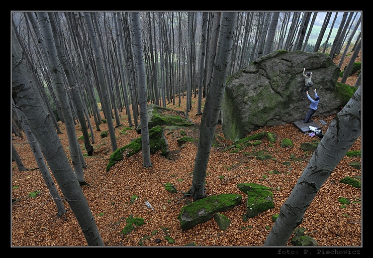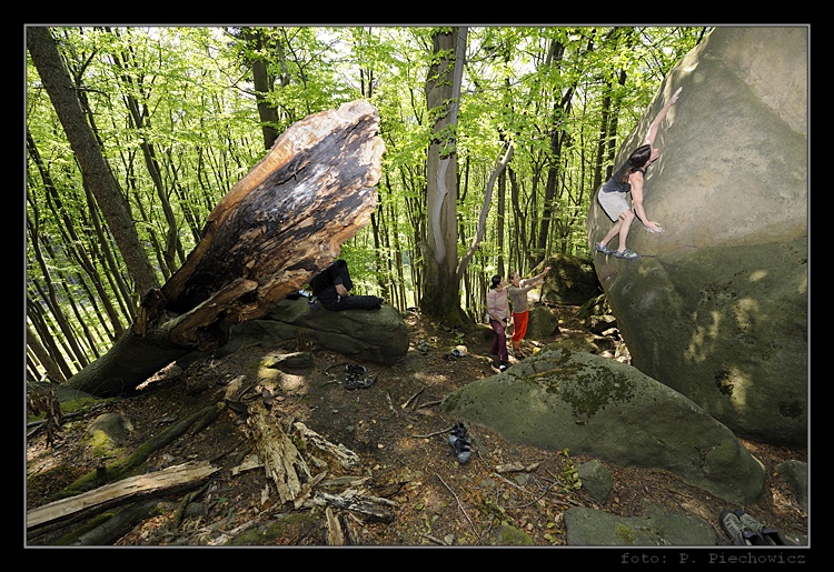 Vrchol PR: sektor Zámčisko, kde je několik starších lehčích směrů od zřejmě zdejšího bouldristy-lezce.