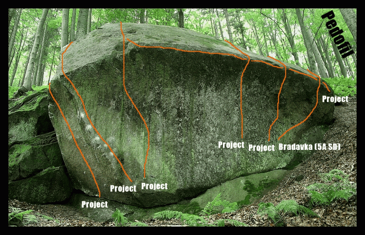 Co se týče počtu směrů v jednotlivých sektorech, jde o hrubý odhad, poněvadž se zatím pořád pachtím se severní Havrankou, kde je dosud nejvíc boulderů. Bude zde do 200 problémků od 2 do ??? Fb (či Pul?). Zakreslených je zde do 130 oranžových šipeček. Na jižní straně kopce bude kolem sice jen 150-ti směrů však v lepším materiálu.