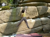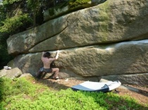 Po protažení ve střeše jsme šli plácat hrany, boulder Squeez 7A Fb, jedna z perliček...(bez aktérů, bude animace, možná groteska....padat několikrát ve výlezu????)