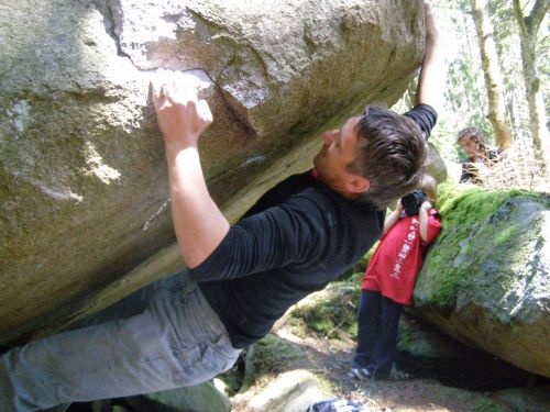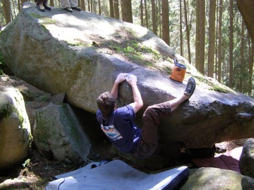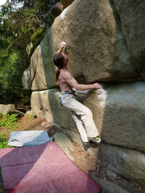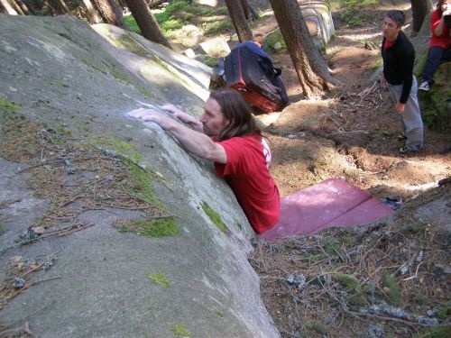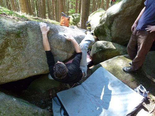 jen ti buldristi nějak nestačili, Karel ještě jo, 6B+ Fb Alex Trikin (vylomený chyt, dříve 6A+ Fb - taky ne zadarmo)
