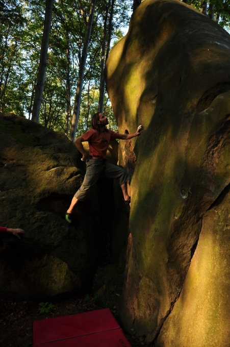 Tak termín závodů se proklatě rychle blíží a tak nezbývá než s pravdou ven. V lese ve dvou sektorech na vás bude čekat 12 balvanů s cca 60 bouldery spíše lehčích stupňů, ale i nějaké ty 7A a výše bouldery se najdou. je zde celkem fest potenciál na nové kousky v panenském sektoru, ale kdo se chce po závodech podepsat ve zdejších boulderových vodách, tak si vemte ocelový kartáč. Hodí se zde :)