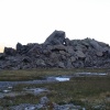 Pak se při cestě dále nahoru najednou přehoupnete a vidíte uplně rovou plochu ledovcové morény protkanou potůčky z výše zmíněné říčky. Jak v moréně, tak okolo ní jsou pořád kameny. Hitovka posední doby je velký (20x20x6m) kámen tvaru houby ze všech stran převislé, na který vede cca 20 bouldrů od 6C do projektu prý za 8B/C (4 kroky za 8B vedoucí do 8A+). a který je v kopci za morénou. U tohoto kamene je i bivak, kde přečkáte i tu netvrdší buřinu a kde maji borci schovaný crashpady, jídlo apod. Půjčit si člověk může, ale mělo by se všechno zase vrátit tam kde bylo. U jídla to platí jako na horských chatách. Něco sníš, něco necháš.