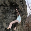 Pak se jeste presuneme na kamen kousek od Soviet Clubu (omlouvam se za nepresne nazvy, ale pruvodce jsem zatim nesehnal a ani nevytiskl z grimpouille.free.fr ), kde se dolezame nekolika cervenymi, ale dost vypecenymi zalezitostmi a Hanka uplne poslednim pokusem dne sundava svuj pytel z lonska v podobe bouldru s neprijemnym spodakovym nastupem, ze ktereho se jde na "cisnika" do prutlaku previsu a pak poskoky pres oble madla do vylezu. Na pohled lehky, na prelez vypeceny kousek...Zacina se stmivat a nam uz telo moc neslouzi, protoze i v patek probehlo lezeni jak na bouldrovce pres obed, tak odpoledne na skalach a tak se vydavame na cestu k autu a pres boulangerii domu. Zitra je taky den...