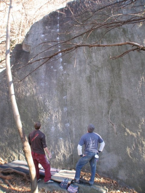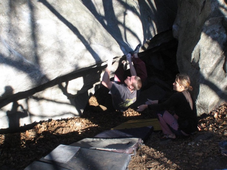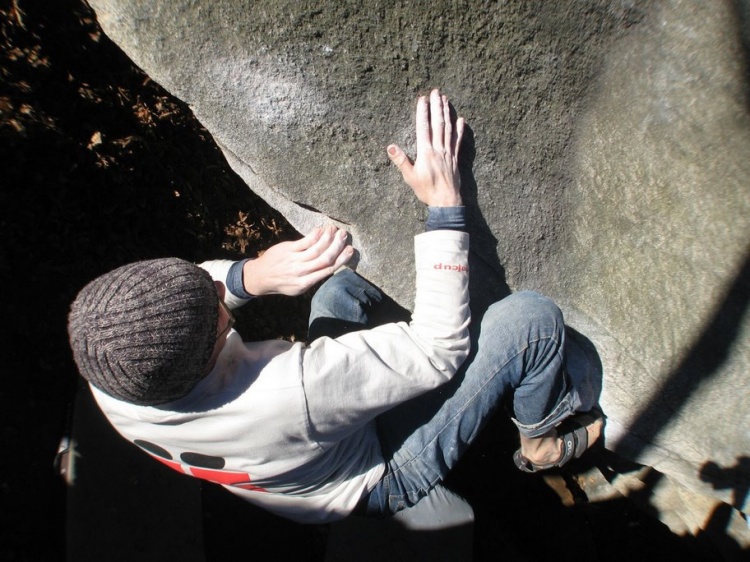 Po chvilce rozhýbávání se naše kroky začly ubírat směr sektor 12, La Boule. Jeden z restů z minula. Podle mě jeden z úchvatných kamenů zde. Zatímco se míním nasáčkovat do varianty ze stoje, Osi zkouší La bulejte vedle.