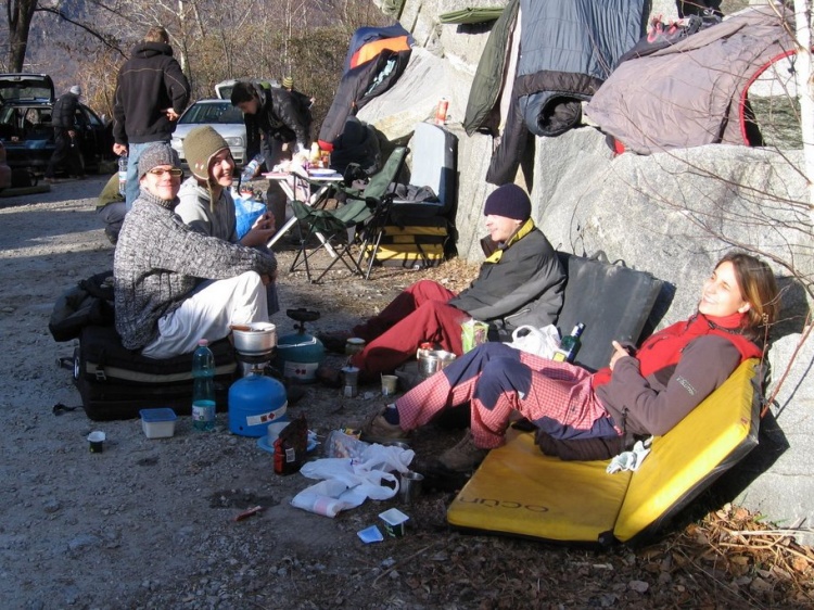 Jeden obětujeme také návštěvě Chironica. Tady je přeci jen víc kosa a tak zbytek pobytu trávíme v Crescianu. Na silvara zjišťujeme, že nejen houby kalí švajčarstí adolescenti,ale aj šeci švajčaři. Půlnoc přežila jen část osazenstva, zbytek nevytáh ani nos ze spacáků. Sice sme vyběhli na vyhlídk,ale všeho všudy prdla jedna jakasi osamocena rachejtla v dáli a to bylo vše. S Novým rokem se přiblížil aj odjezd a tak naposled míříme mezi šutry. Večer už jen sbalit, šlápnout na plyn a tradaaa.