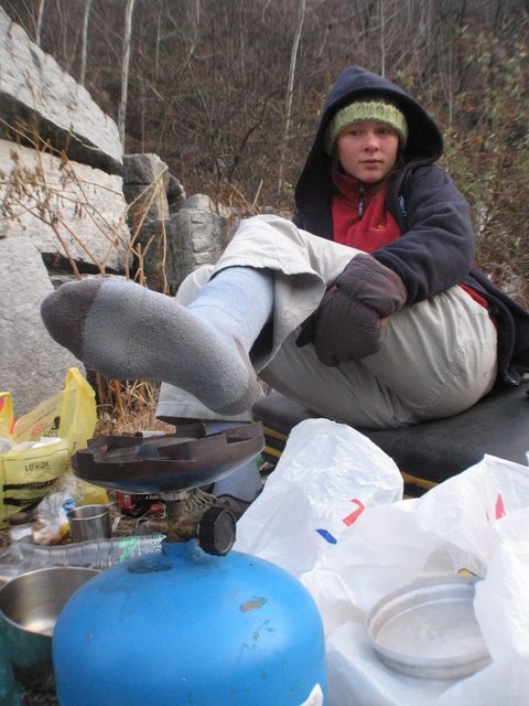 Ještě stíháme koupel v potoce než zaleze oskar a hurá do spacáků. Denní pohůdka jde celkem rychle do kytek. Pár škopků nahrazuje pohodu domova a vánoční atmosféru.