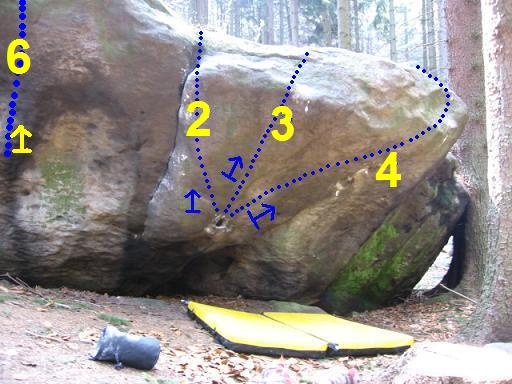 SD, start z díry a doprava přes dírku a oblinu na vrchol.