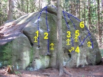 SD, start pravá dirka a levá oblina. Zved přes dirku na hranu a podél ní doleva až na špici a na vrchol.