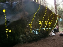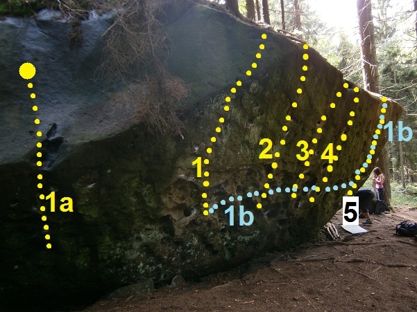 SD, nahoře přes dírku a ve výlezu nebrat strom, možná 6A+.