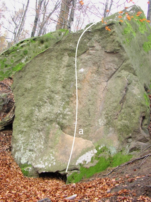 Těsně vlevo od Sarkoidozy, nástup přes hýbající se malý bočák, dále přes lištu Sarkoidozy a šikmou ubíhající hranu vlevo do madla za hranou a překul do rajbasu. Neuhýbat do madla a hrany vpravo v Sarkoidoze. Trochu morfo :-)!