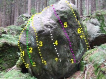 Start z lišt přes oblinu na hranu a po ní na vrchol, bez použití děr.