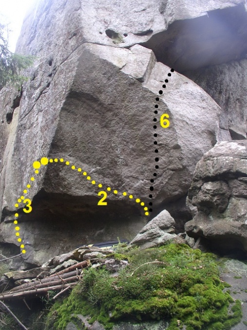 SD, z díry a bočáku převislým kýlem doleva, konec za hranou v polici.