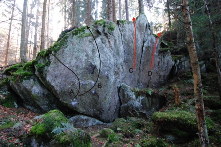 Z lišty přes spoďáček do lišty a přes madlo na vrchol.