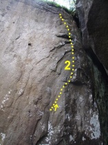 Ze stoje, start z díry a lišty, konec v madle pod vrcholem. Hodně technické a vzdušné, špatný dopad.