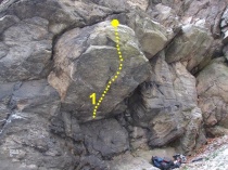 Ze stoje přímo přes velký převis, bez použití pravé hrany! Konec v madle u borháku, krutá gradující silovina, možná 8B/B+ ???