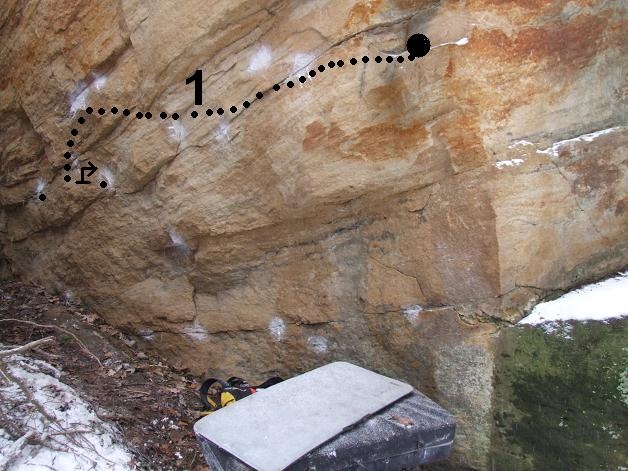 SD levá lišta, prává bočák ( tečky ), traverzem doprava, konec v madle na hraně.