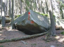 Napravo od stromu, z vyraznejsi boule, lehke prekuleni se pres hranu.