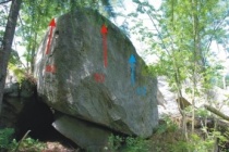 Vpravo od hrany na vrchol.Těžké, skok.