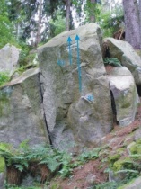 Po chytech pod hranu a zprava přes bočáky na vrchol.