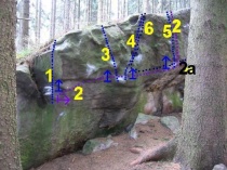 SD, nástup jako Nesmysl a traverz doprava do cesty Malá domů a tou na vrchol.