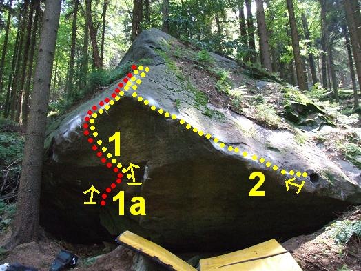 SD, ze sedu rukama v díře, traverz doleva po hraně až na její konec a výlez Kleopatrou.