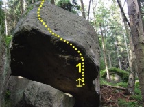 SD, převisem podél hrany do dvou větších děr a z nich n.v.