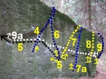 SD, nástup bouldrem Ferox a traverz doleva až do nástupu bouldru Prontoflex a jím n.v.