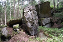 100m za Bivakem, před pasekou. Sem je lepší vystoupat z parkoviště před autobusovou zastávkou na začátku Loučovic. Vrátit se 20m k pomníčku motorkáře a po lesní cestě, která začíná v lese za pomníčkem přímo na paseku.