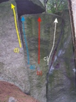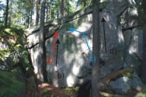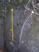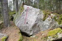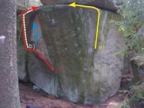 Možná trošku těžší. Pěkný, silový bouldr.Nástup bez hrany vlevo.