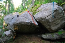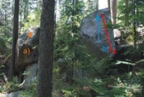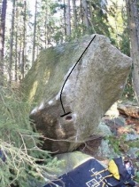 Jdete-li po oranžové spojovací cestě od Klíčníka směr Nový svět II, po 30 metrech,v řidčím lese, zahnete vlevo do kopce na paseku s ležícími stromy. Kámen je 40 m. vpravo. (Vlevo nahoře je kámen Verona, 30 m. nad Squamishem je Kóta 718.)