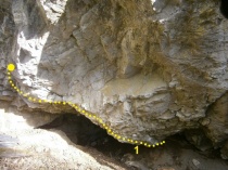 SD, obě ruce na špici kýlu ( spoďák ) pravačkou do lišty a převislým kýlem doleva, konec v koutu v madle - bočák ( vlevo nad číslem 538 ). Kampusovej krok přes lištu. Nádhernej převislej kýl v krasu! Možná lehčí?