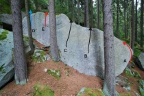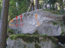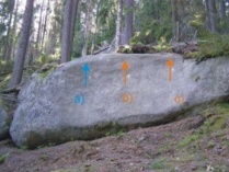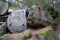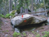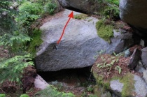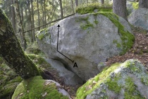 z nástupové lišty "Návratů" směrem do červeného bouldru a tím nahoru