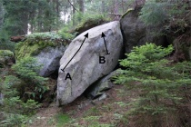 Kámen se nachází asi 20 metrů vpravo nad kamenem