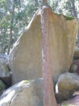 Napravo od stromu, z vyraznejsi boule, lehke prekuleni se pres hranu.
