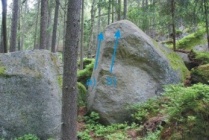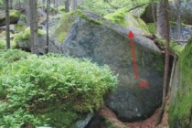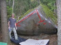 SD, ze spodního kamene, přes břicho, do zářezu a vzepřít na vrchol. Neutíkat doleva.