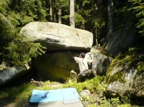Nástup zleva z vedlejšího kamene z podvěsu.(z lesa)