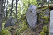 S kamenem dole, přes lištičky doprava na vrchol.