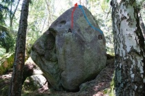 Přes díru doprava po hraně a stěnkou na vrchol.Moc pěkné.Z díry výlez doleva přes hranu vlevo asi za 6B+.Sitstart projekt.